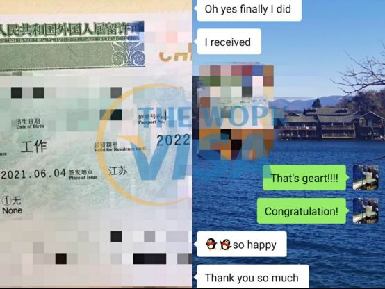 客戶的工作簽證在上海延期被拒最后在江蘇找到了新的工作,在我們的幫助下他最后成功的在江蘇拿到了一年的工作居留許可。